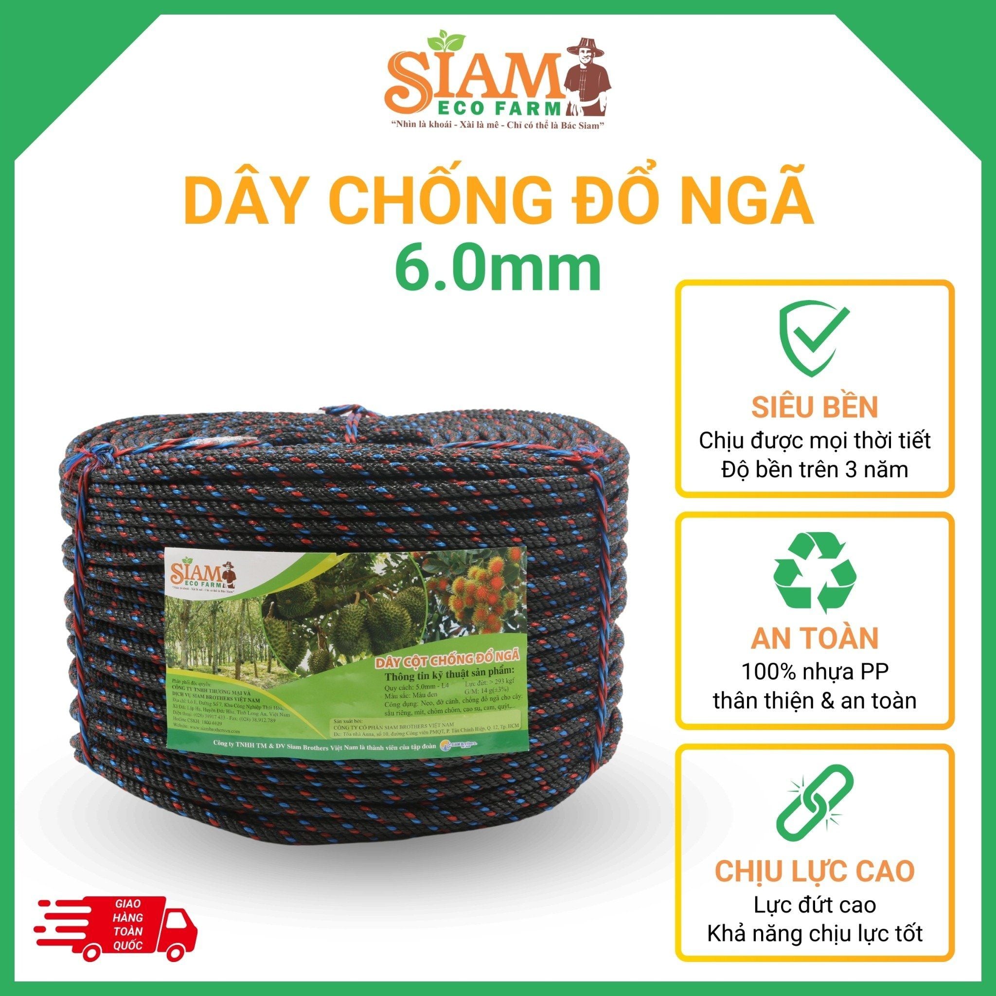 Dây Chống Đổ Ngã 6mm của SIAM Brothers Việt Nam được sản xuất trên công nghệ hiện đại cho sản phẩm dây thừng nhựa PP nguyên sinh 100%, chống tia UV